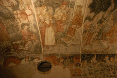 mezzo delle storie affrescate sulla parete lunga a sinistra.